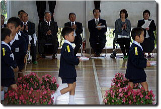| お祝いの言葉も,町長,教育委員会やPTA会長からいただきました。 しっかりと目を向けて,話を聞く姿は 「さすが1年生。」 これからも先生の話や友だちの発表をよく聞いて, ぐんぐん伸びてくれることを期待しています。 |