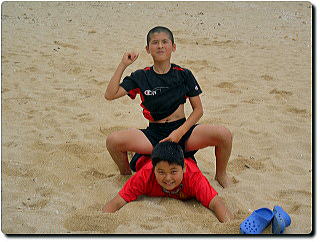 恒例のビーチフラッグ大会。 連覇あり,新チャンピオンあり。 今年も白熱した戦いが繰り広げられました。 |