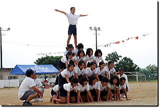 組体操で、私がしたのは、456年女子全員で、大きいピラミッドの一番下をやりました。 |