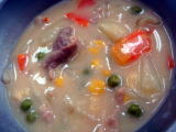 今日の給食は,ポトフ,牛乳,パン,ジャム,杏仁フルーツでした。一口メモにも書いてあったとおり洋風のおでんといえたメニューでした。ポトフに入っていた冬瓜,人参,キャベツは,地産地消で安心して食べれました。杏仁フルーツは,冷たくてフルーツらしい風味が出ていておいしかったです。 |