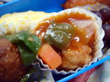 今日の給食は、なるむ、すぶた、ごはん、牛乳でした。すぶたは、すっぱかったです。 |